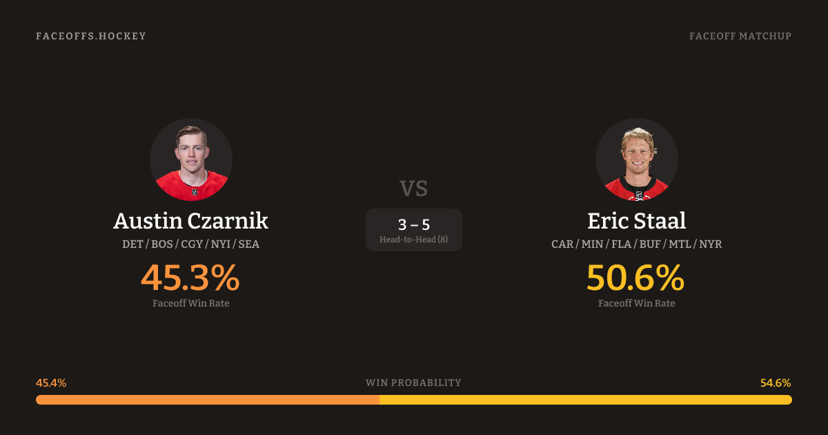 Austin Czarnik vs Eric Staal — Faceoff Head-to-Head