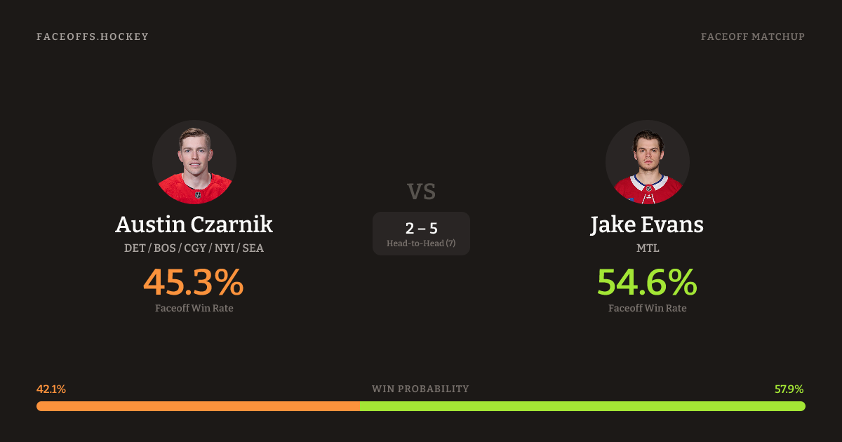 Austin Czarnik vs Jake Evans — Faceoff Head-to-Head