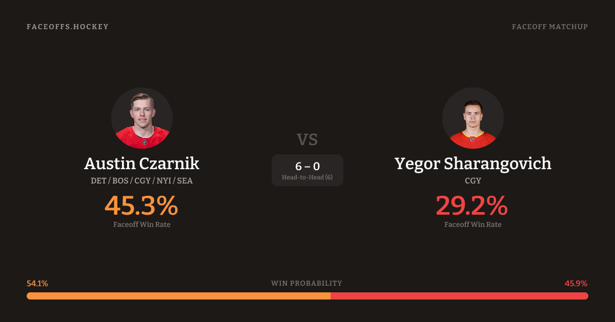 Austin Czarnik vs Yegor Sharangovich — Faceoff Head-to-Head