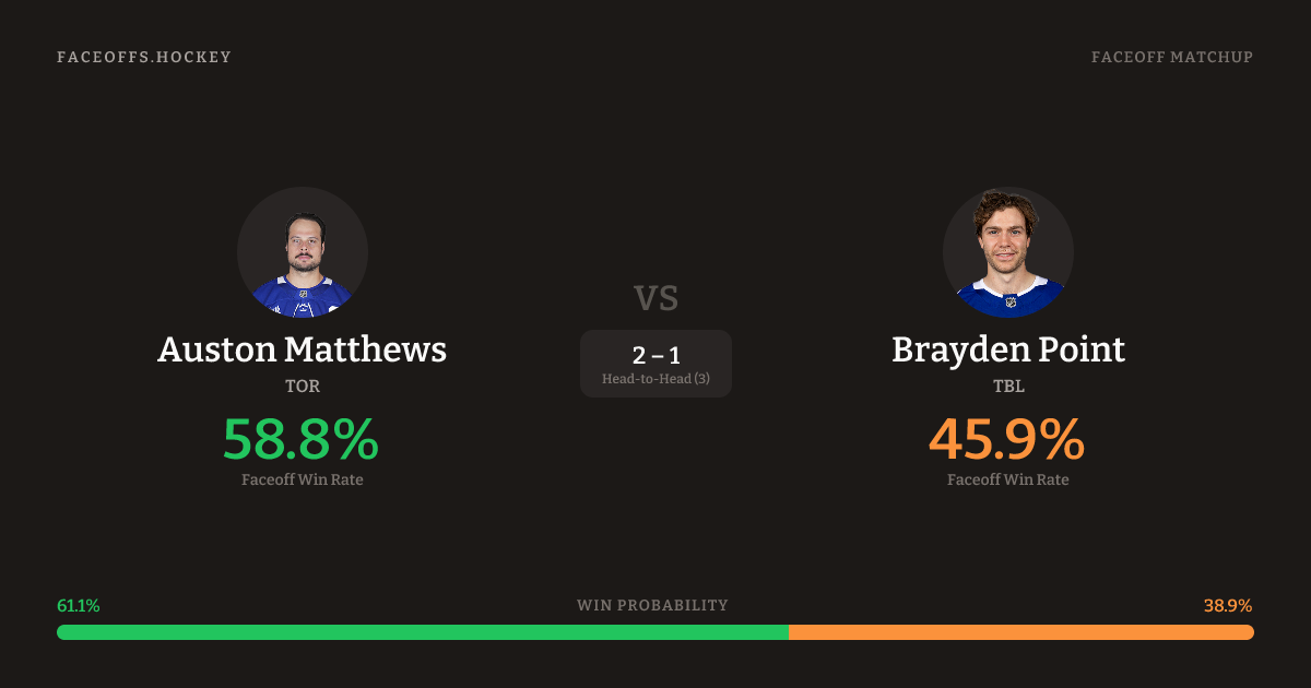 Auston Matthews vs Brayden Point — Faceoff Head-to-Head