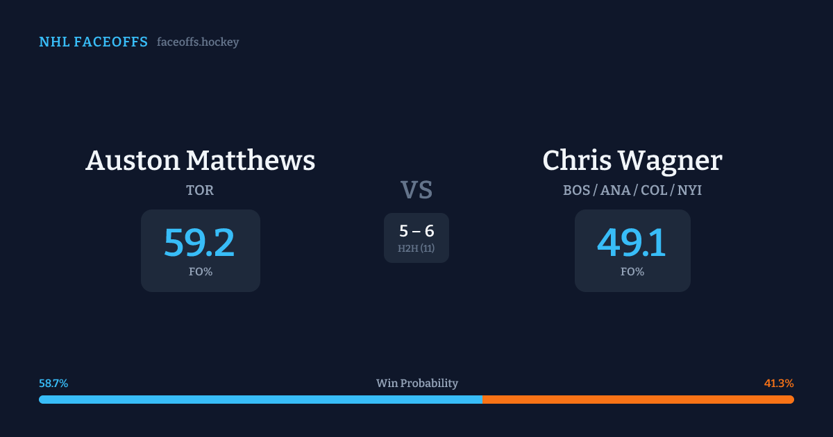 Auston Matthews vs Chris Wagner — Faceoff Head-to-Head