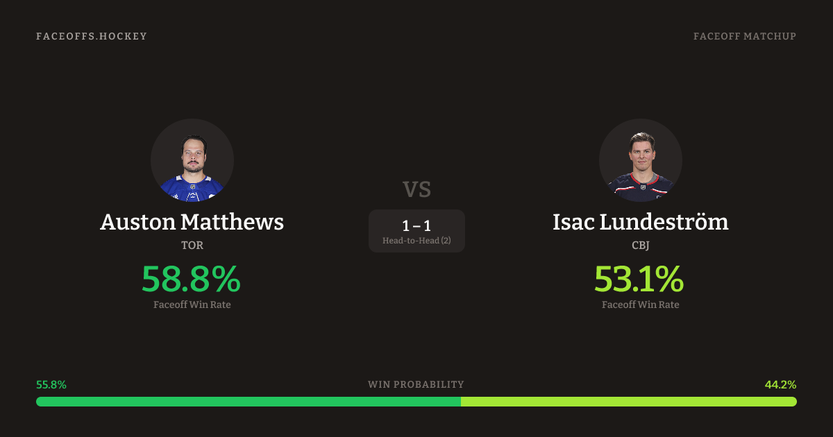Auston Matthews vs Isac Lundeström — Faceoff Head-to-Head