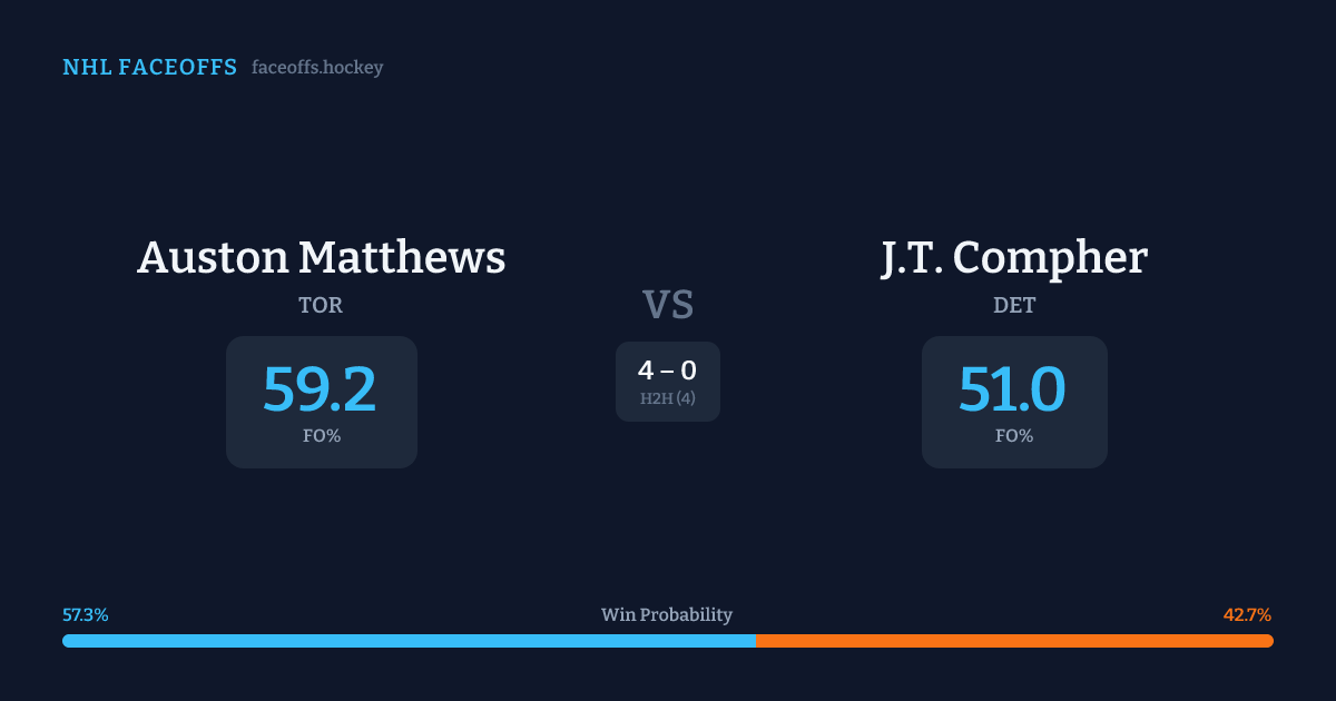 Auston Matthews vs J.T. Compher — Faceoff Head-to-Head