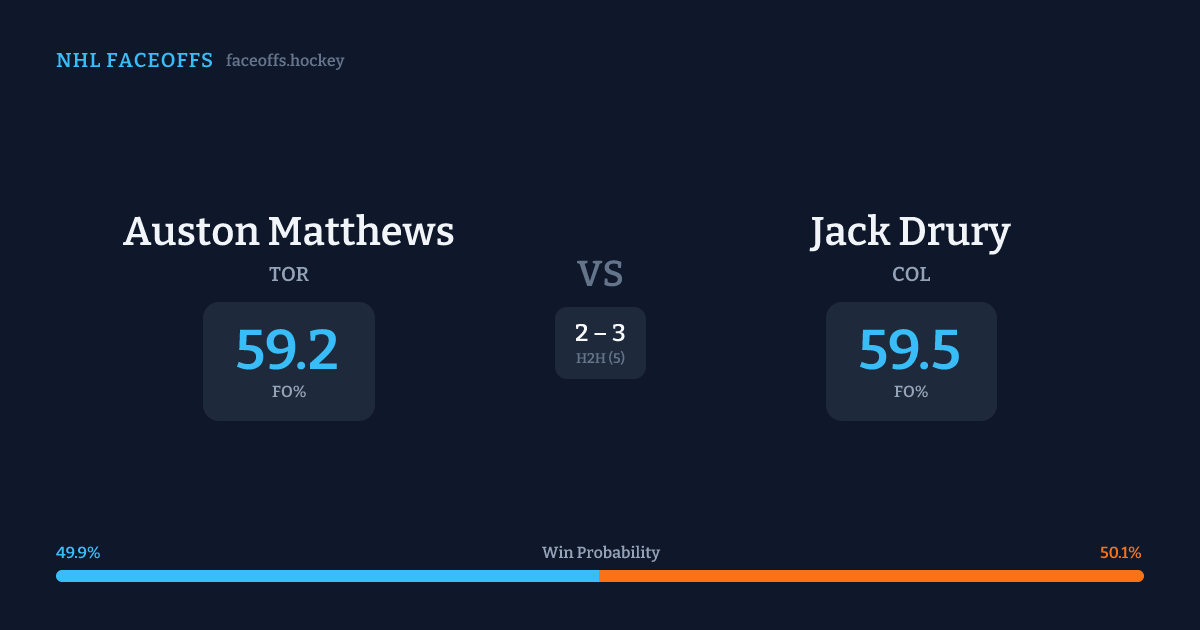 Auston Matthews vs Jack Drury — Faceoff Head-to-Head