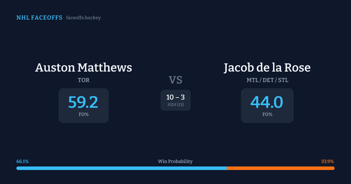 Auston Matthews vs Jacob de la Rose — Faceoff Head-to-Head