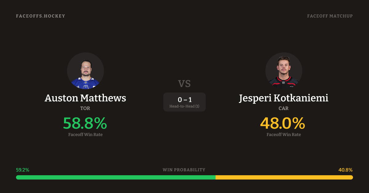 Auston Matthews vs Jesperi Kotkaniemi — Faceoff Head-to-Head