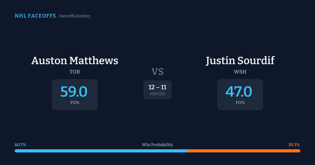 Auston Matthews vs Justin Sourdif — Faceoff Head-to-Head
