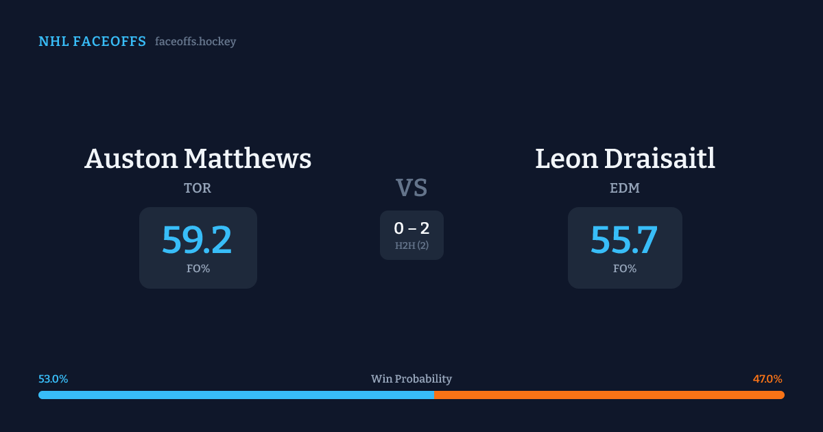 Auston Matthews vs Leon Draisaitl — Faceoff Head-to-Head