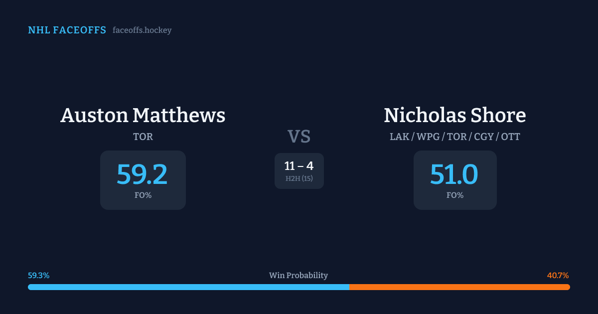 Auston Matthews vs Nicholas Shore — Faceoff Head-to-Head