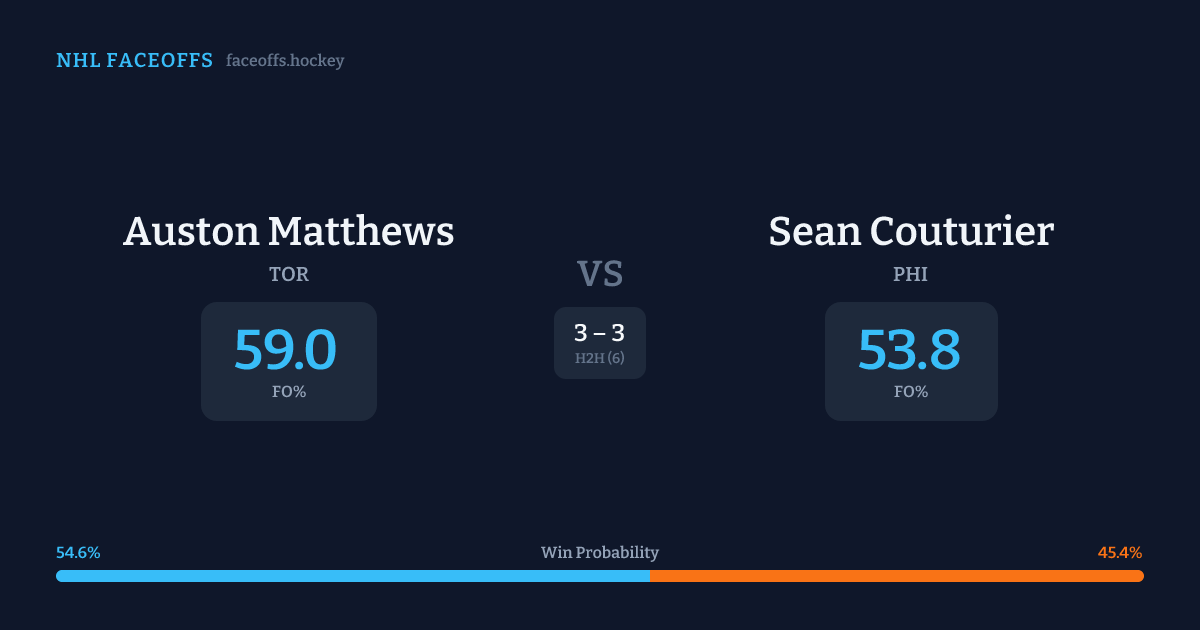 Auston Matthews vs Sean Couturier — Faceoff Head-to-Head