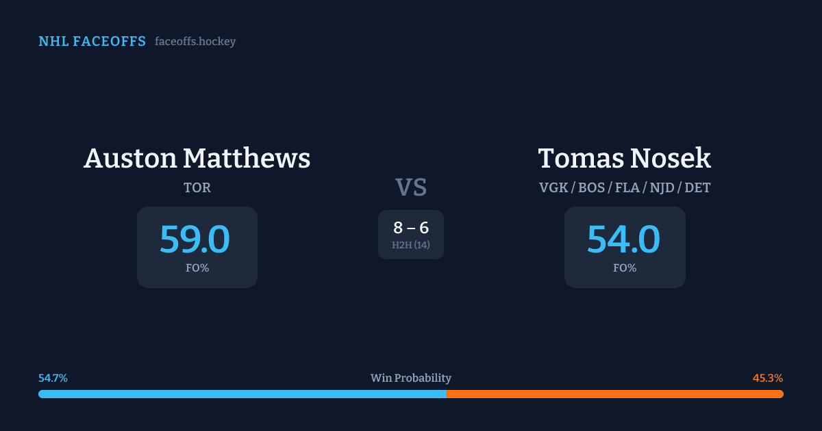 Auston Matthews vs Tomas Nosek — Faceoff Head-to-Head