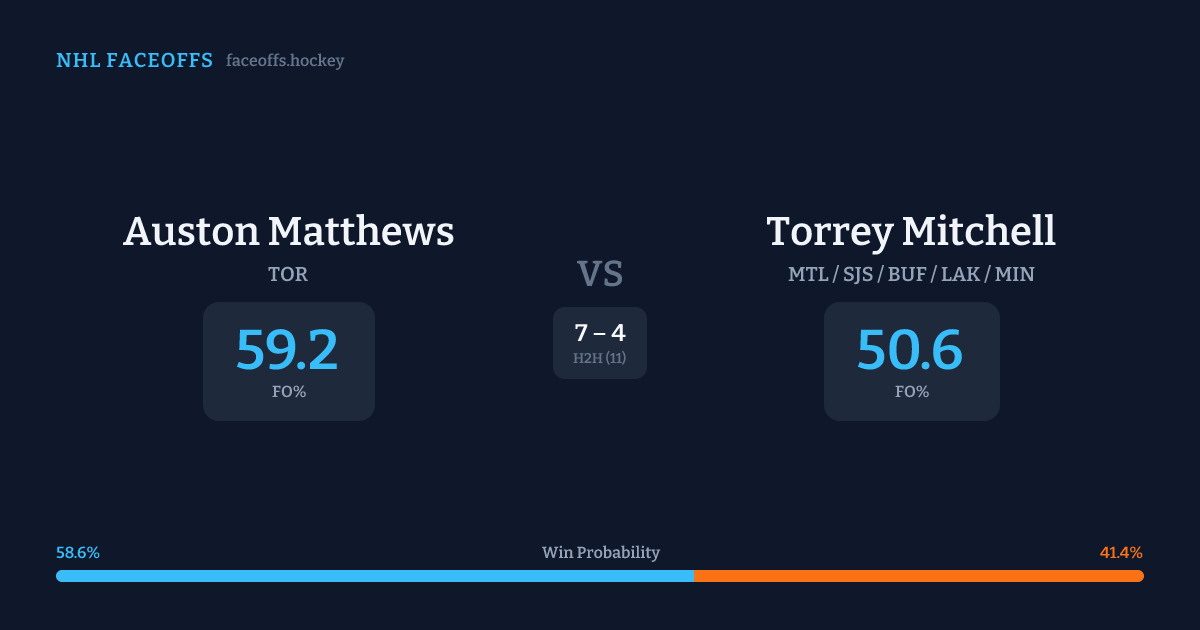 Auston Matthews vs Torrey Mitchell — Faceoff Head-to-Head