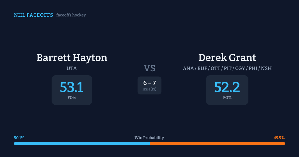 Barrett Hayton vs Derek Grant — Faceoff Head-to-Head