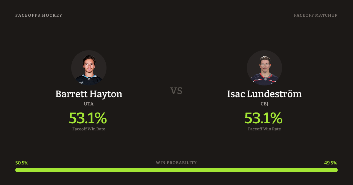Barrett Hayton vs Isac Lundeström — Faceoff Head-to-Head