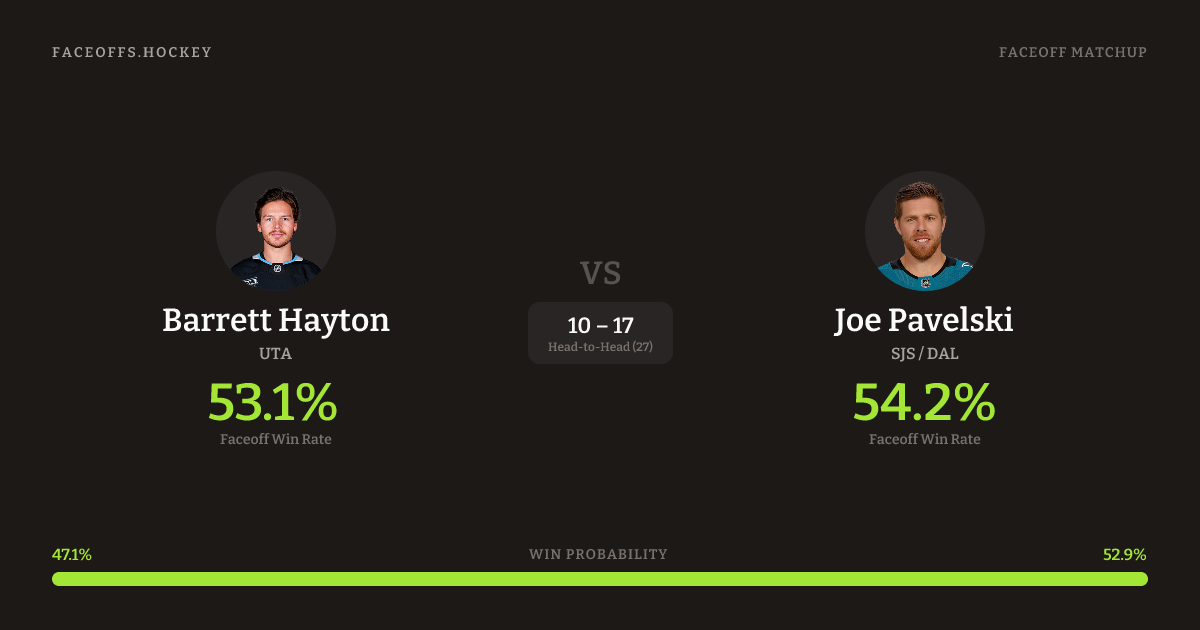 Barrett Hayton vs Joe Pavelski — Faceoff Head-to-Head