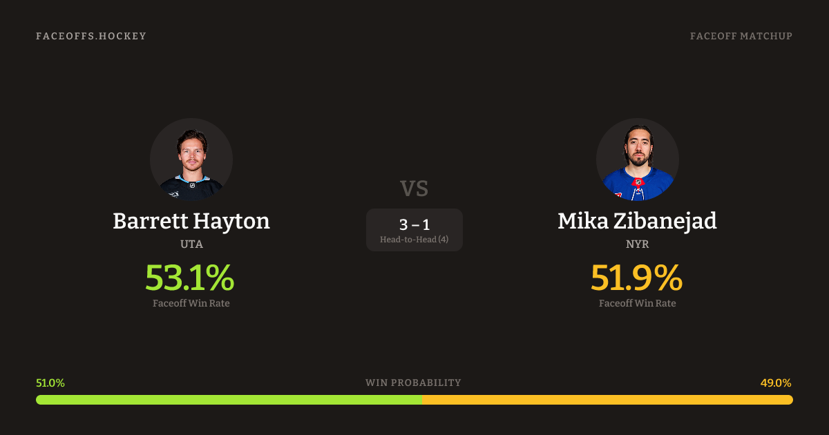 Hayton 49.8% vs Zibanejad 49.3% (+0.5%)