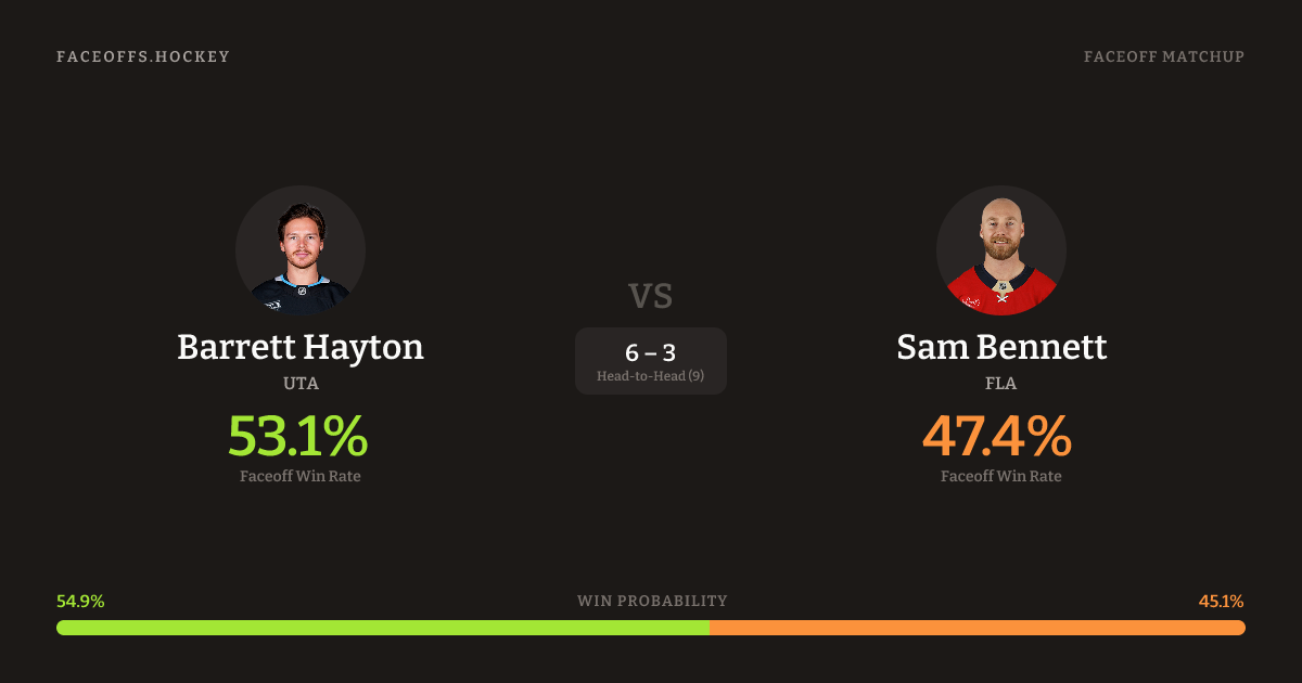 Barrett Hayton vs Sam Bennett — Faceoff Head-to-Head