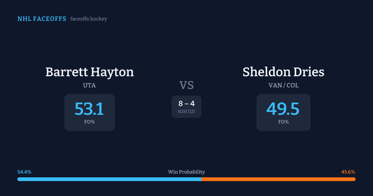 Barrett Hayton vs Sheldon Dries — Faceoff Head-to-Head