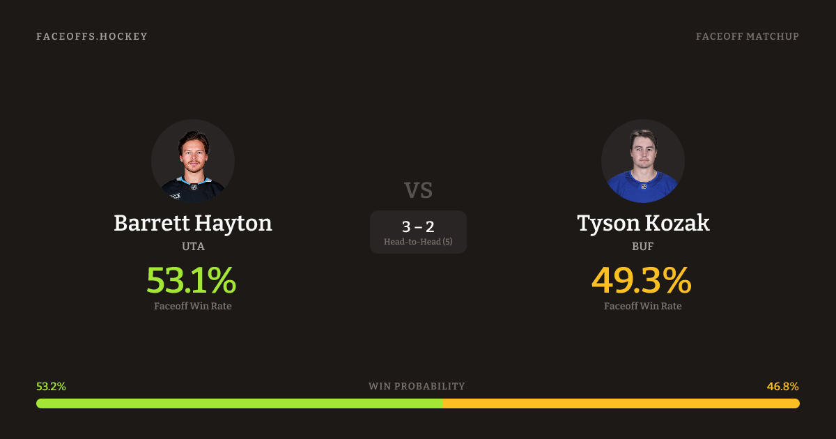 Barrett Hayton vs Tyson Kozak — Faceoff Head-to-Head