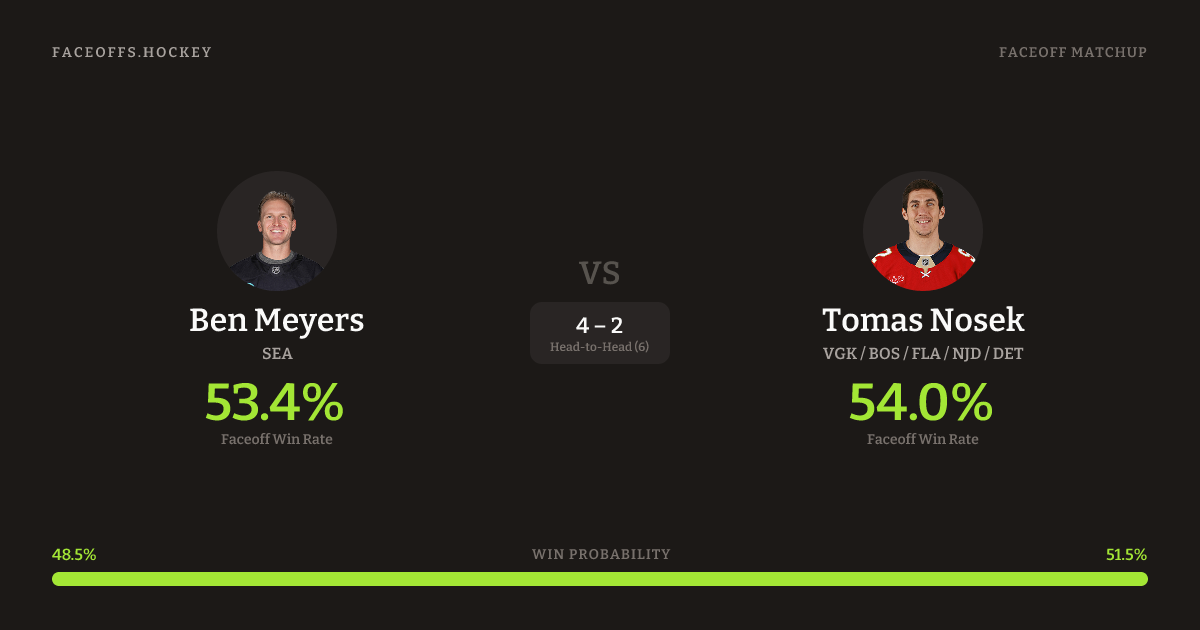 Ben Meyers vs Tomas Nosek — Faceoff Head-to-Head