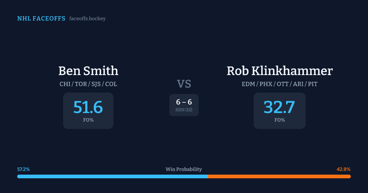 Ben Smith vs Rob Klinkhammer — Faceoff Head-to-Head