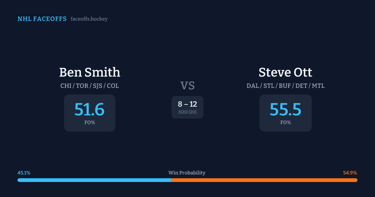 Ben Smith vs Steve Ott — Faceoff Head-to-Head