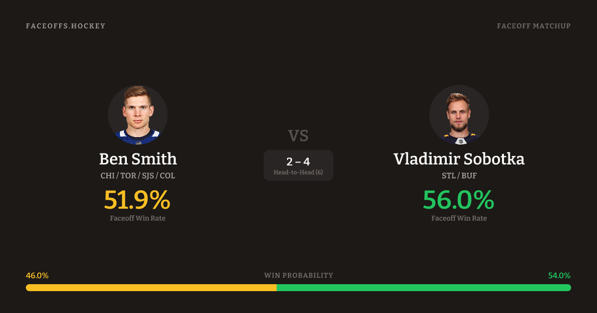 Ben Smith vs Vladimir Sobotka — Faceoff Head-to-Head