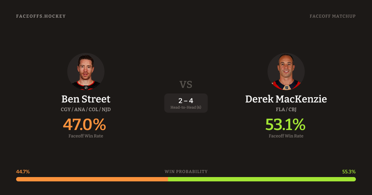 Ben Street vs Derek MacKenzie — Faceoff Head-to-Head