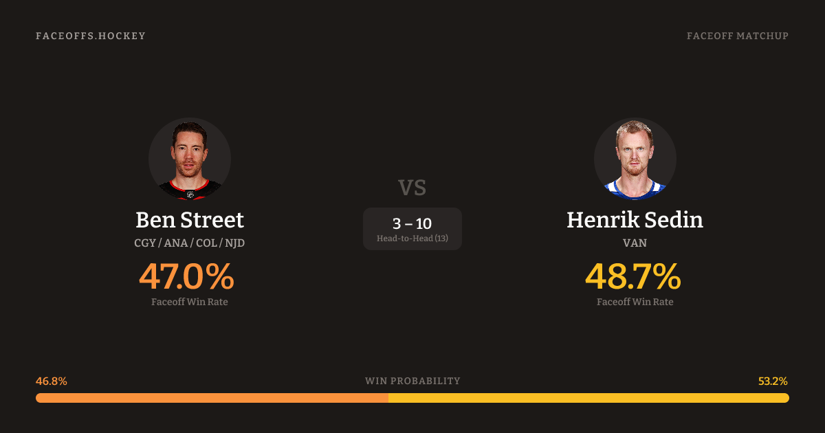 Ben Street vs Henrik Sedin — Faceoff Head-to-Head