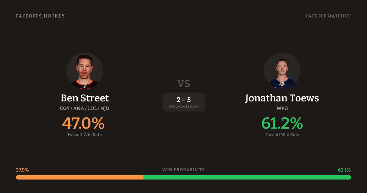 Ben Street vs Jonathan Toews — Faceoff Head-to-Head