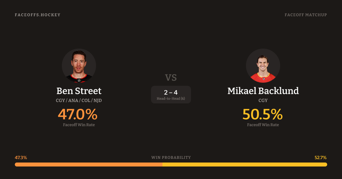 Ben Street vs Mikael Backlund — Faceoff Head-to-Head