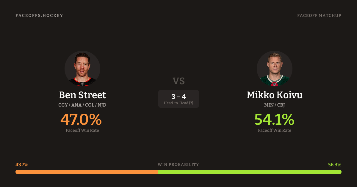 Ben Street vs Mikko Koivu — Faceoff Head-to-Head