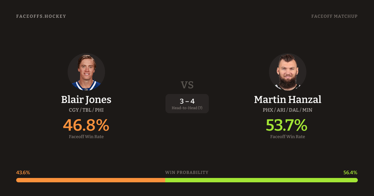 Blair Jones vs Martin Hanzal — Faceoff Head-to-Head