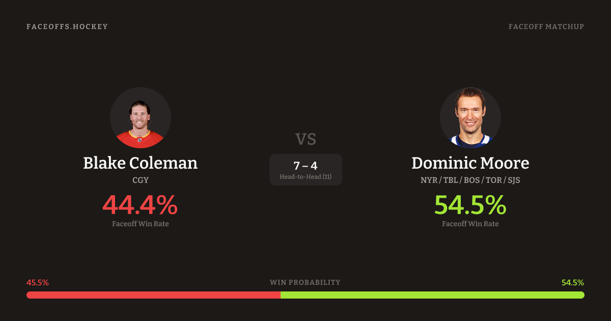Blake Coleman vs Dominic Moore — Faceoff Head-to-Head
