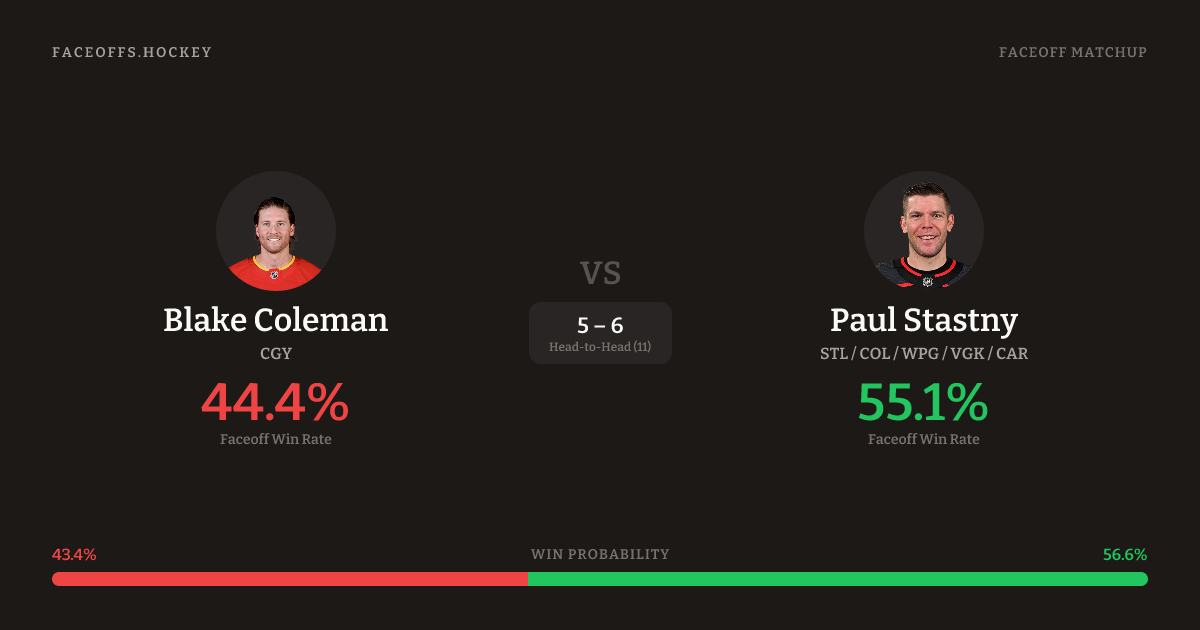 Blake Coleman vs Paul Stastny — Faceoff Head-to-Head