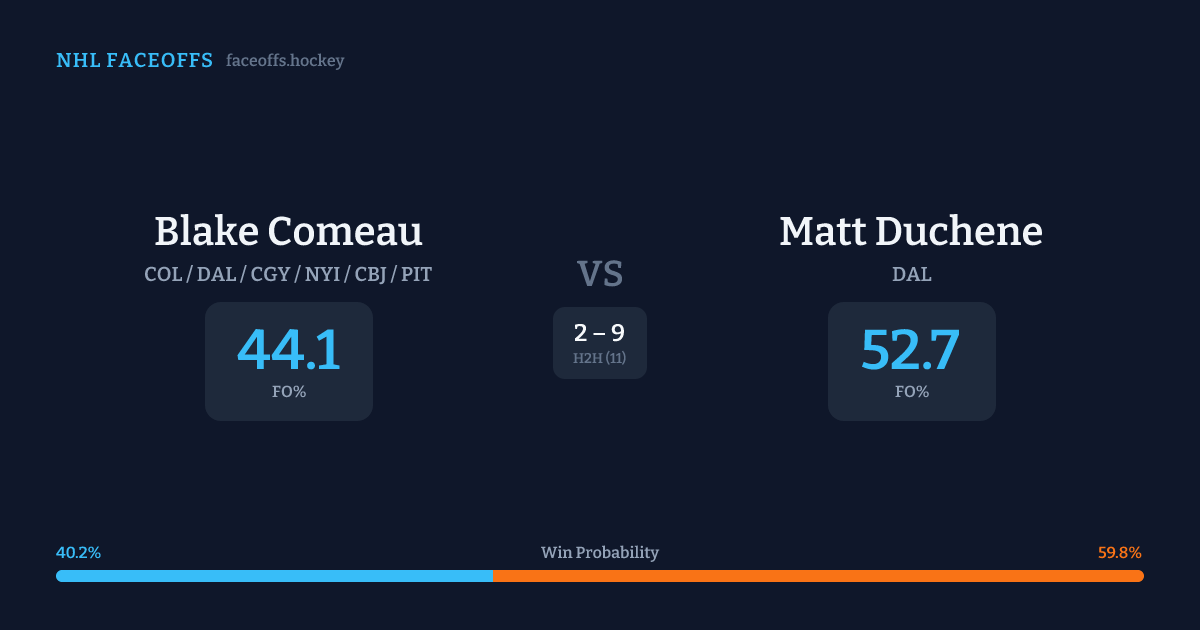 Blake Comeau vs Matt Duchene — Faceoff Head-to-Head