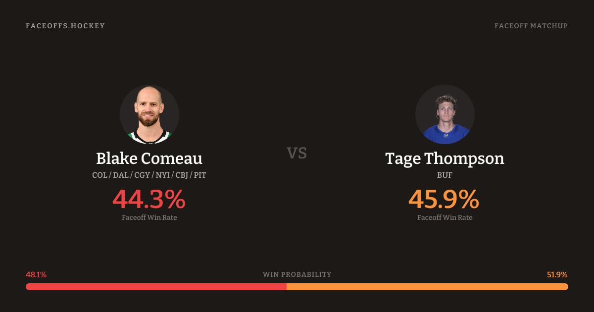 Comeau shoots right. Thompson is 47.6% vs right-shot opponents (1,110).