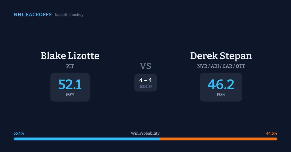 Blake Lizotte vs Derek Stepan — Faceoff Head-to-Head