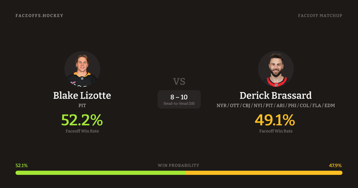 Blake Lizotte vs Derick Brassard — Faceoff Head-to-Head