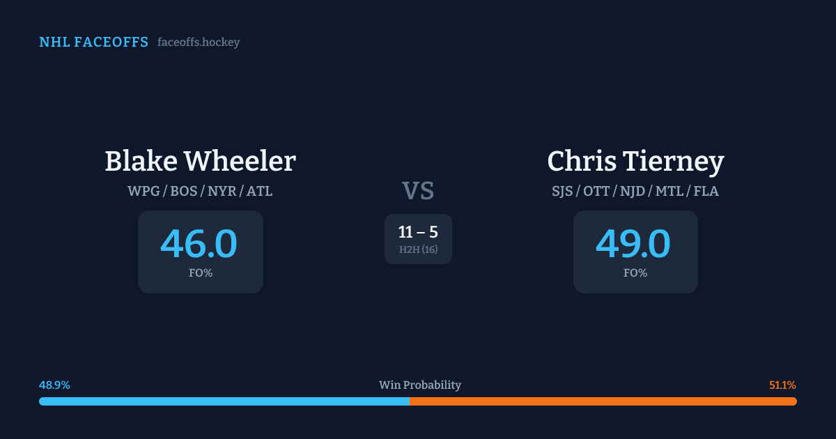 Blake Wheeler vs Chris Tierney — Faceoff Head-to-Head