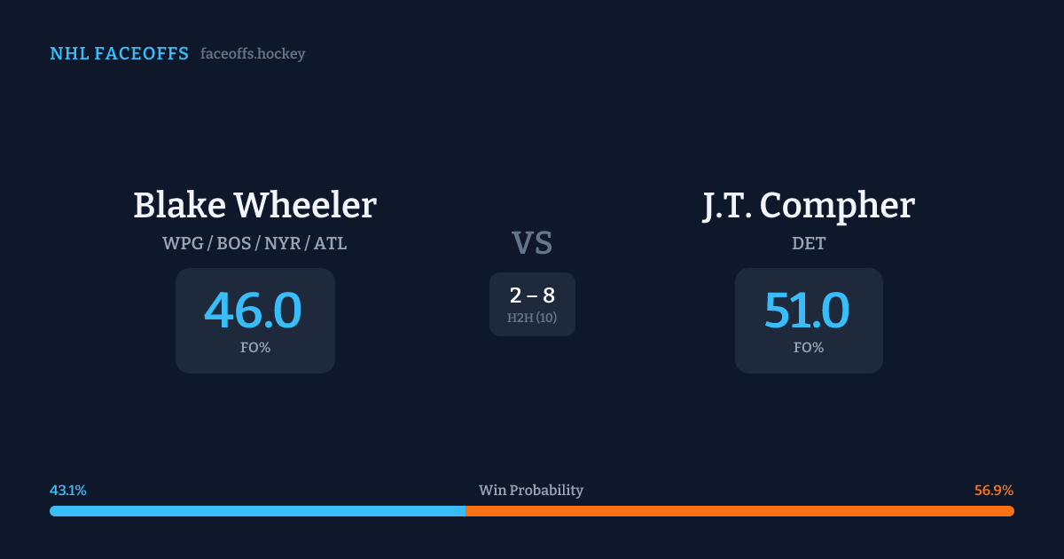 Blake Wheeler vs J.T. Compher — Faceoff Head-to-Head