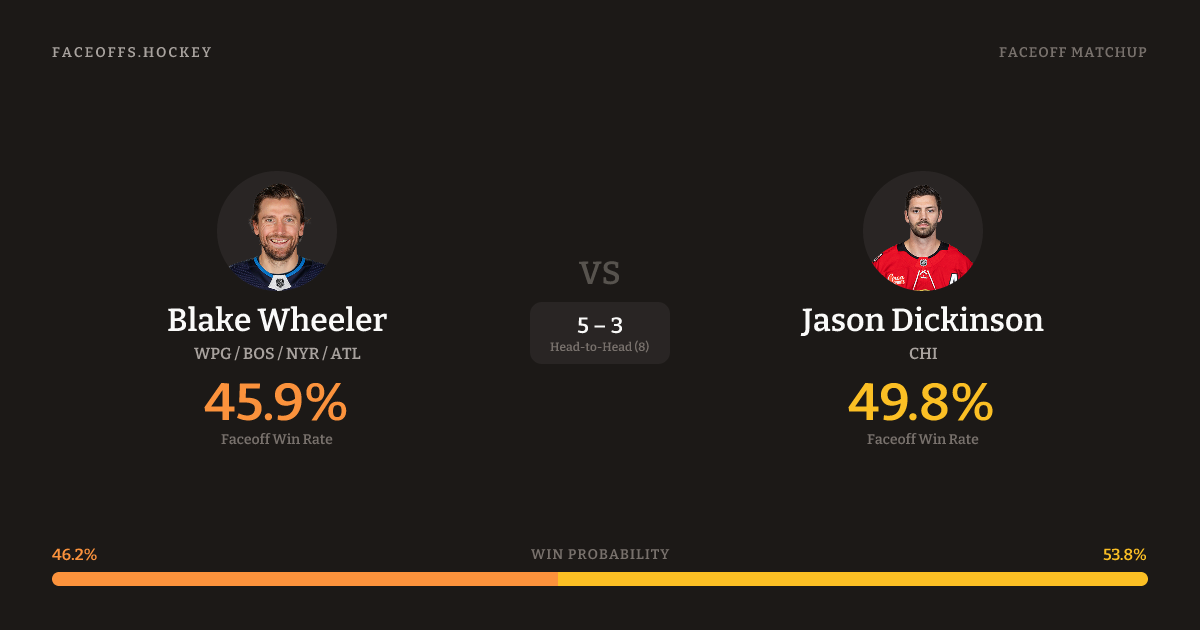 Blake Wheeler vs Jason Dickinson — Faceoff Head-to-Head