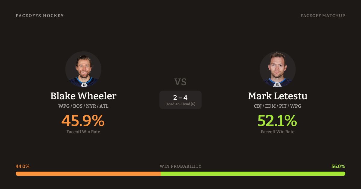 Blake Wheeler vs Mark Letestu — Faceoff Head-to-Head