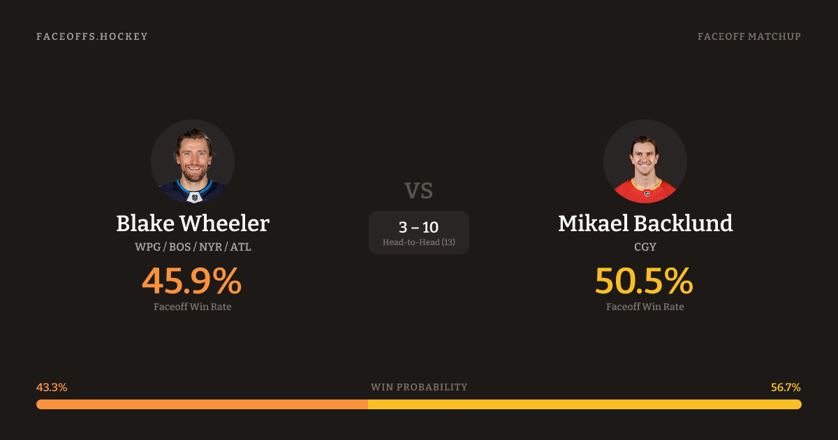 Blake Wheeler vs Mikael Backlund — Faceoff Head-to-Head