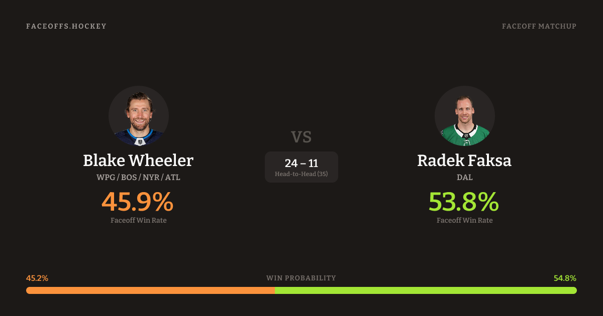 Blake Wheeler vs Radek Faksa — Faceoff Head-to-Head
