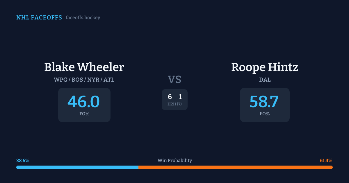 Blake Wheeler vs Roope Hintz — Faceoff Head-to-Head