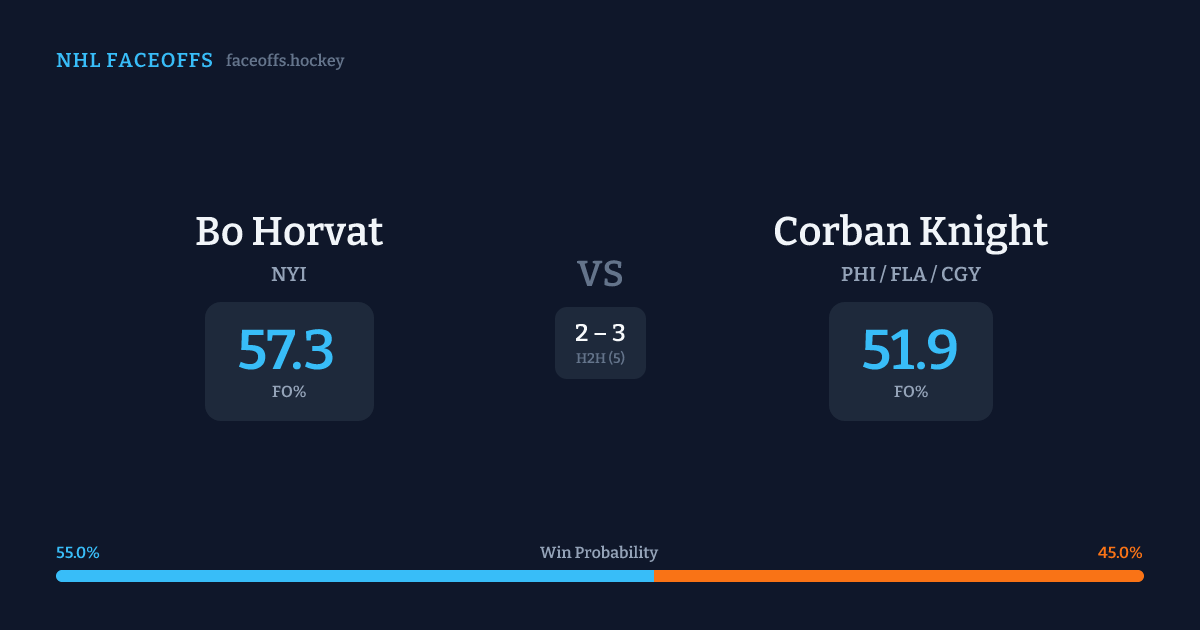 Bo Horvat vs Corban Knight — Faceoff Head-to-Head