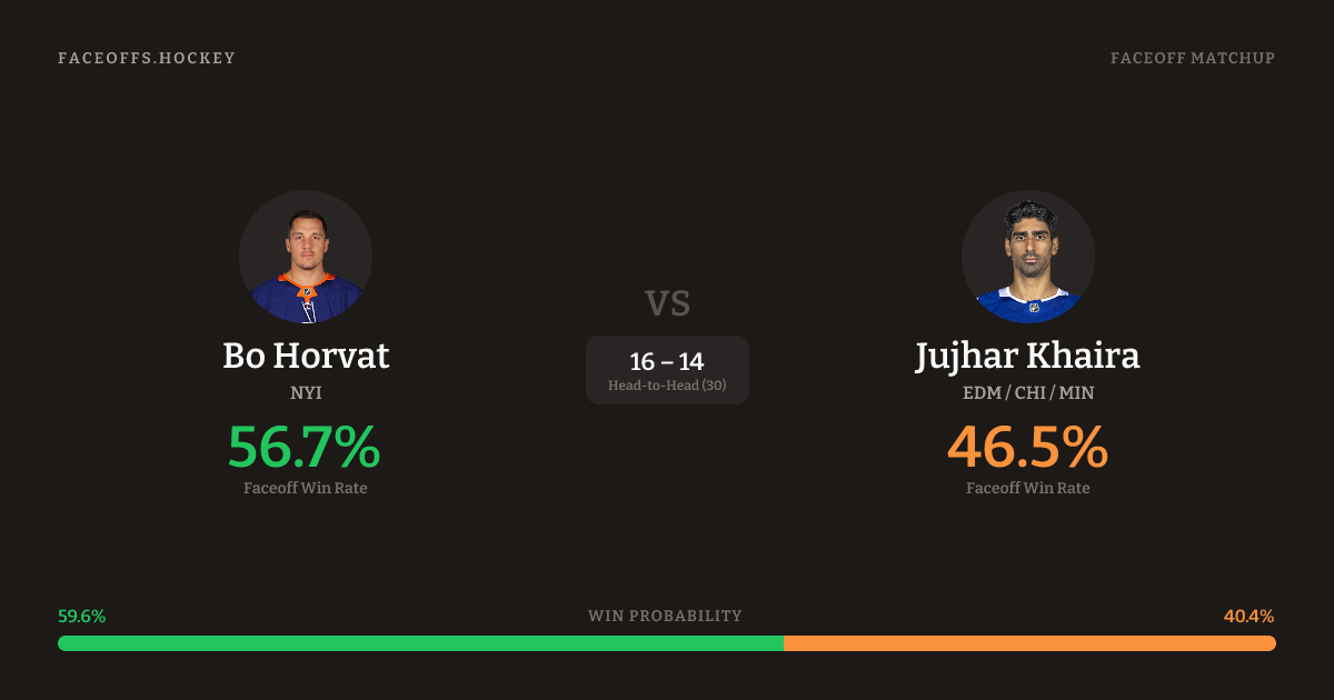 Bo Horvat vs Jujhar Khaira — Faceoff Head-to-Head