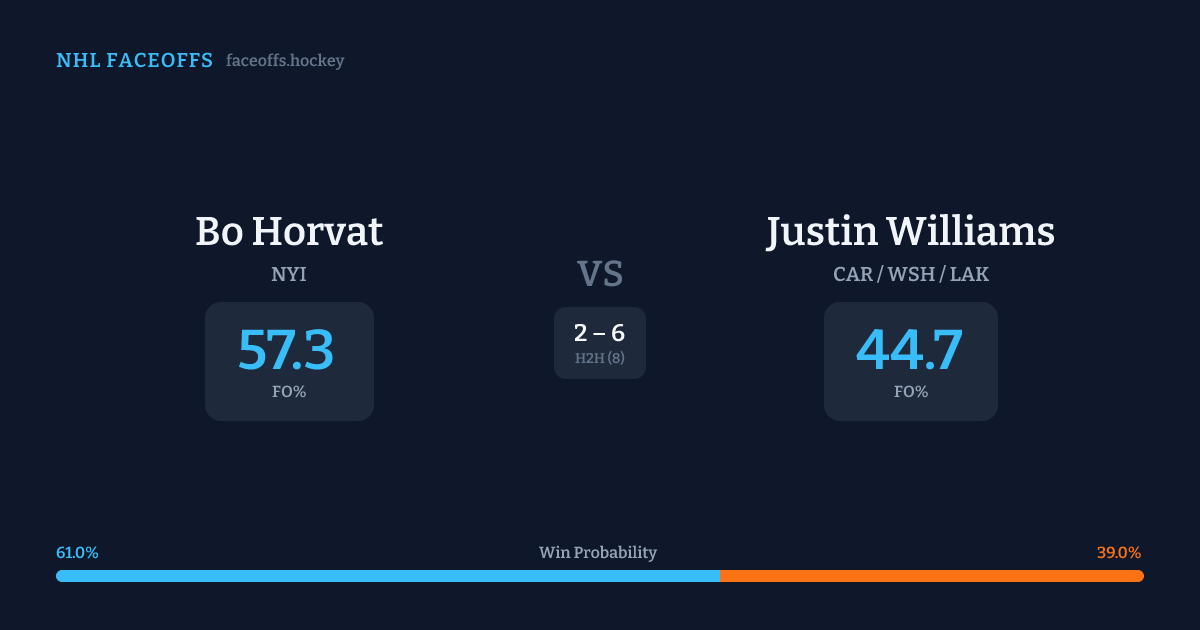 Bo Horvat vs Justin Williams — Faceoff Head-to-Head