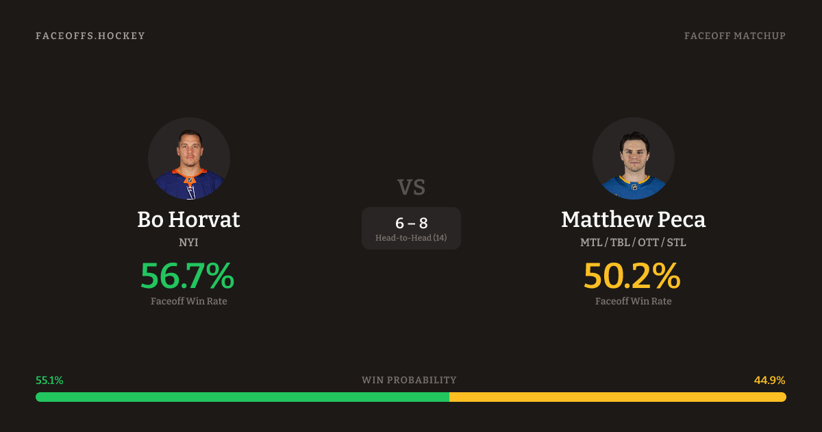 Bo Horvat vs Matthew Peca — Faceoff Head-to-Head